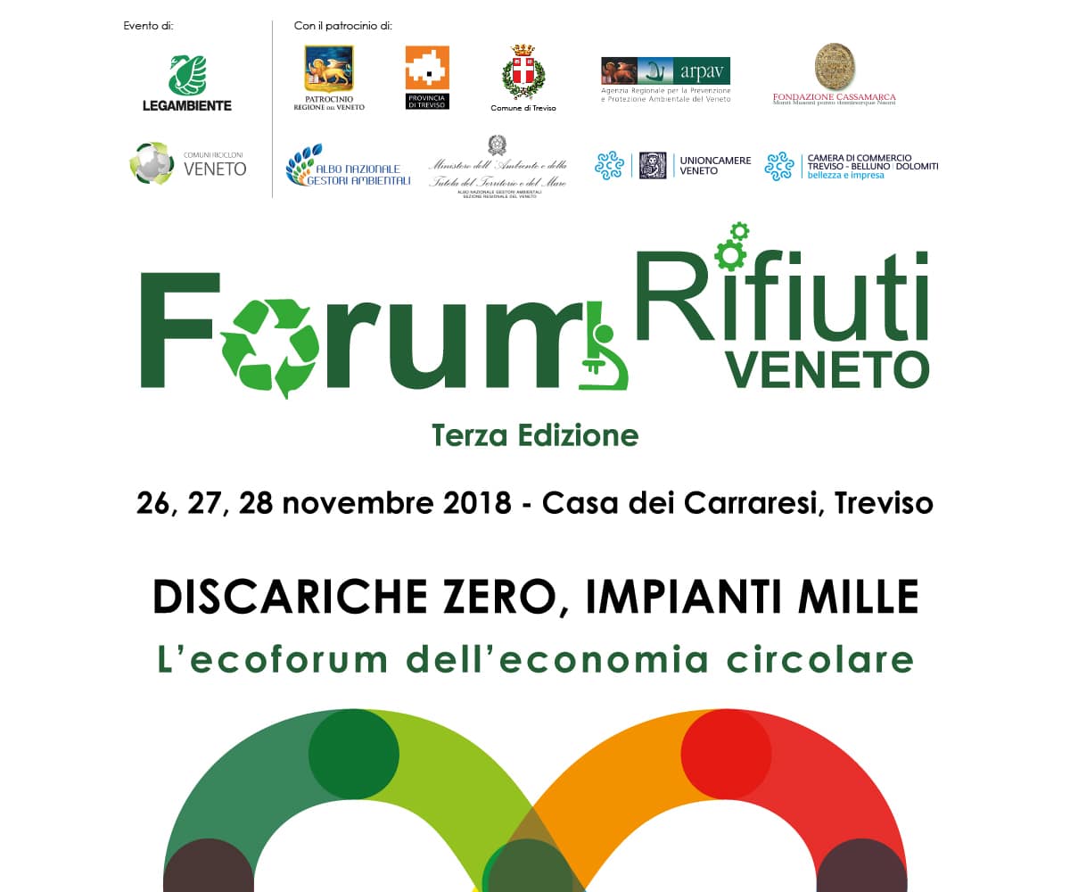 Anche quest’anno il Forum Rifiuti Veneto avrà luogo nella marca trevigiana nell’ultima settimana di Novembre coinvolgendo le migliori esperienze del settore per sviluppare proposte concrete utili alla crescita, nel nuovo contesto nazionale ed europeo, dell’economia circolare in Veneto.