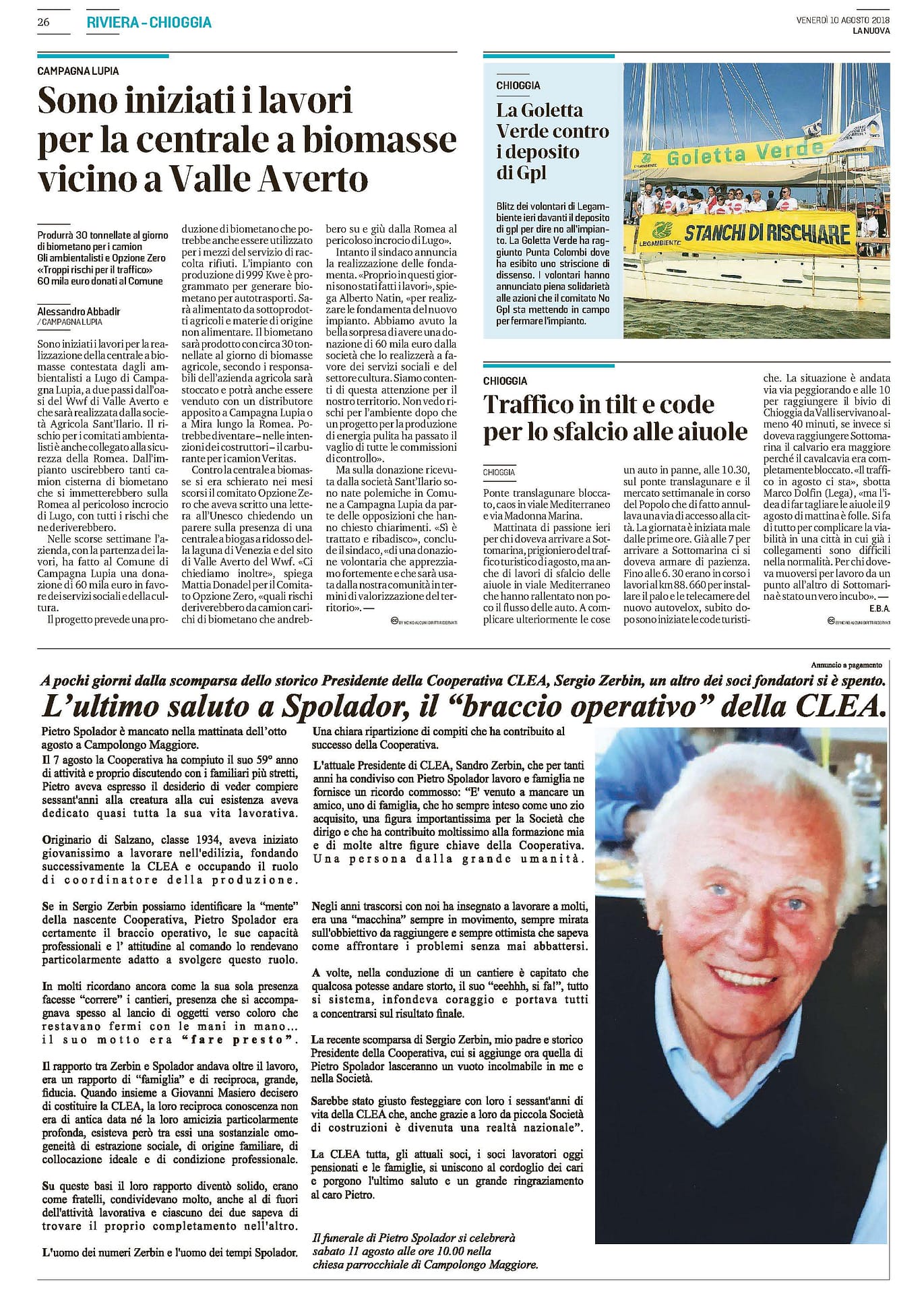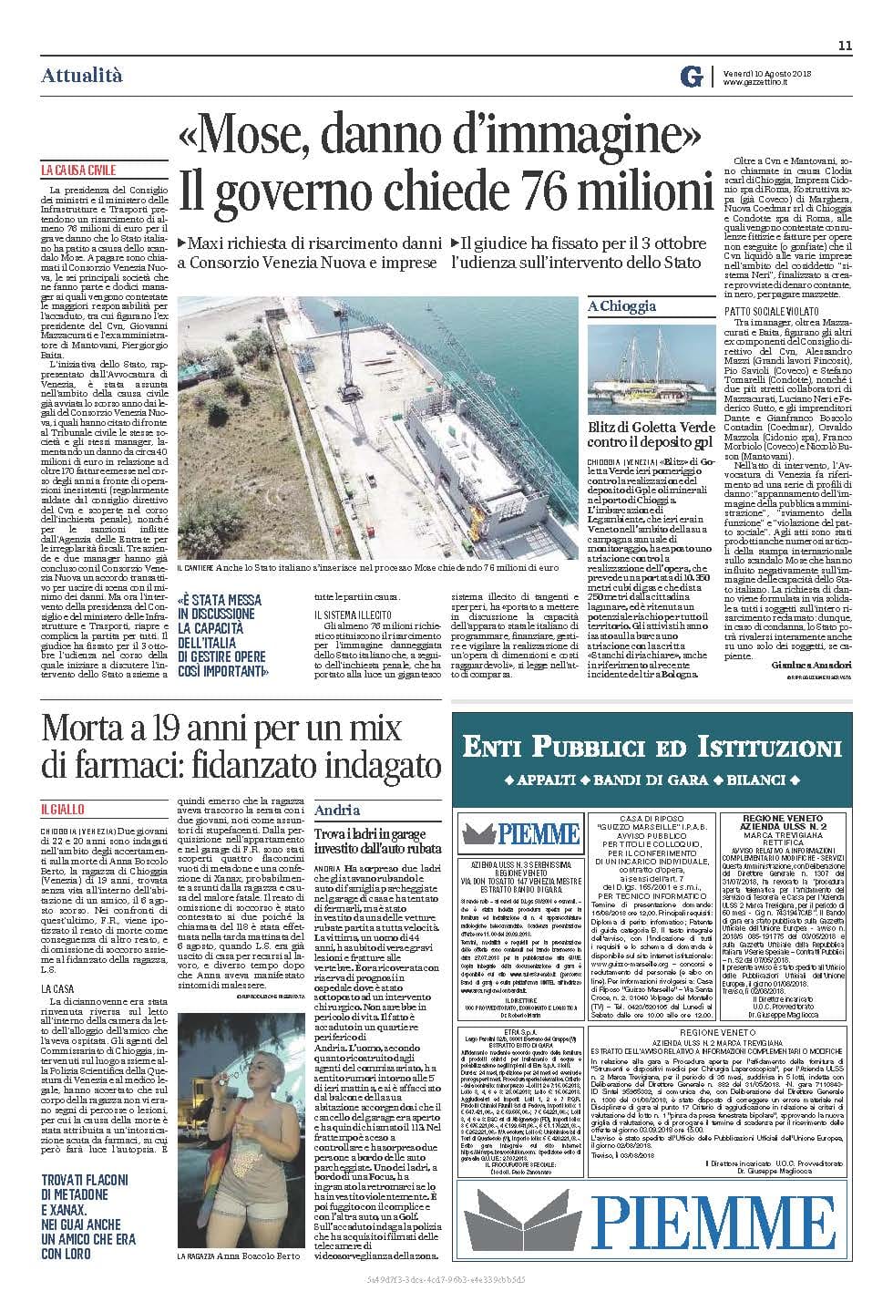 Gazzettino del 10 agosto 2018, blitz di Goletta