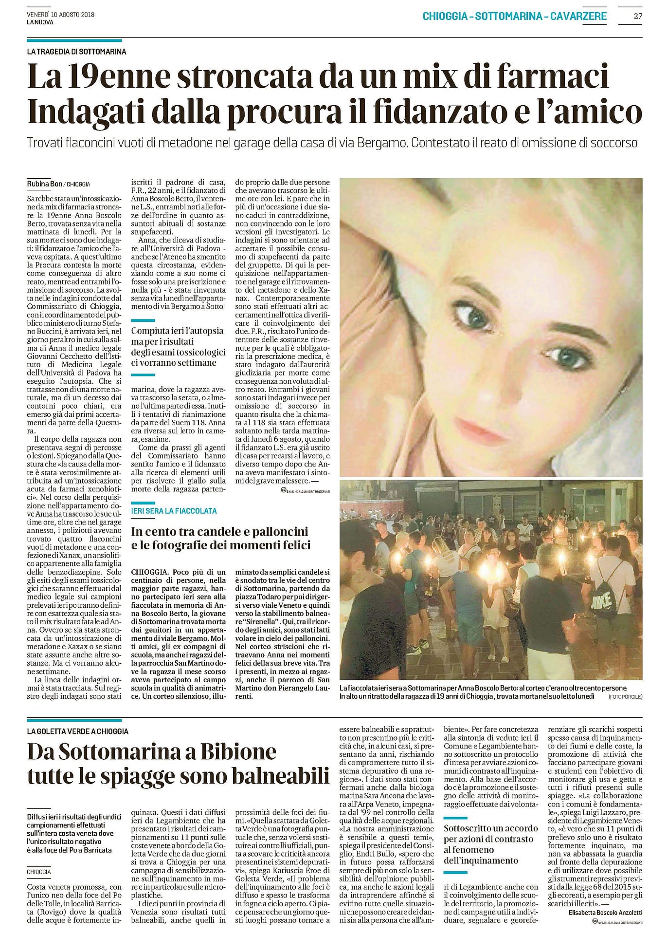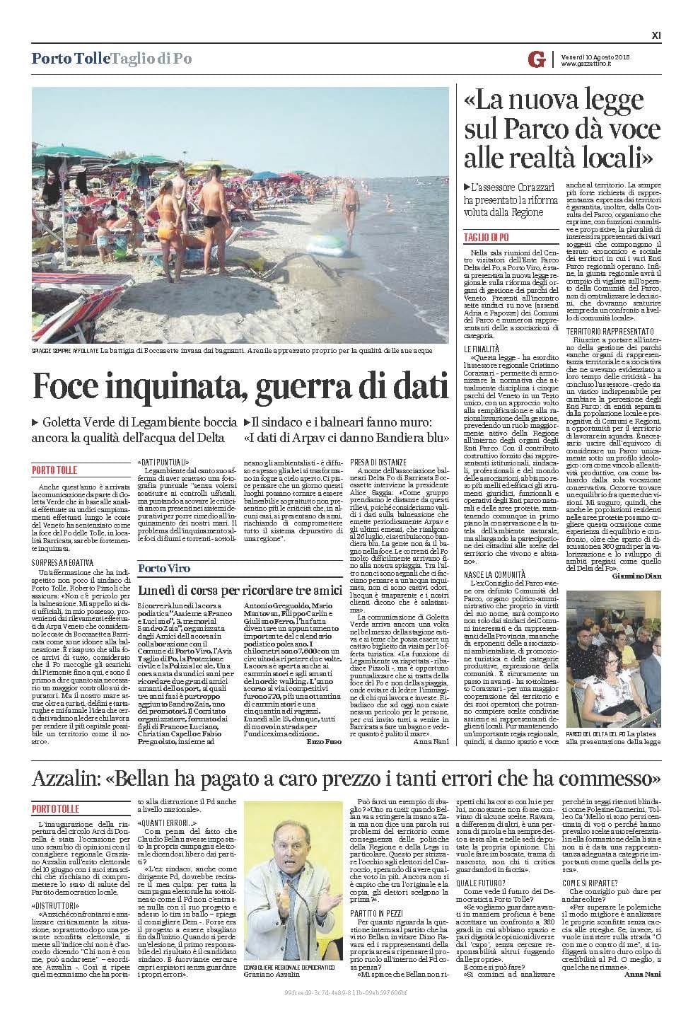 Gazzettino del 10 agosto 2018, foce inquinata