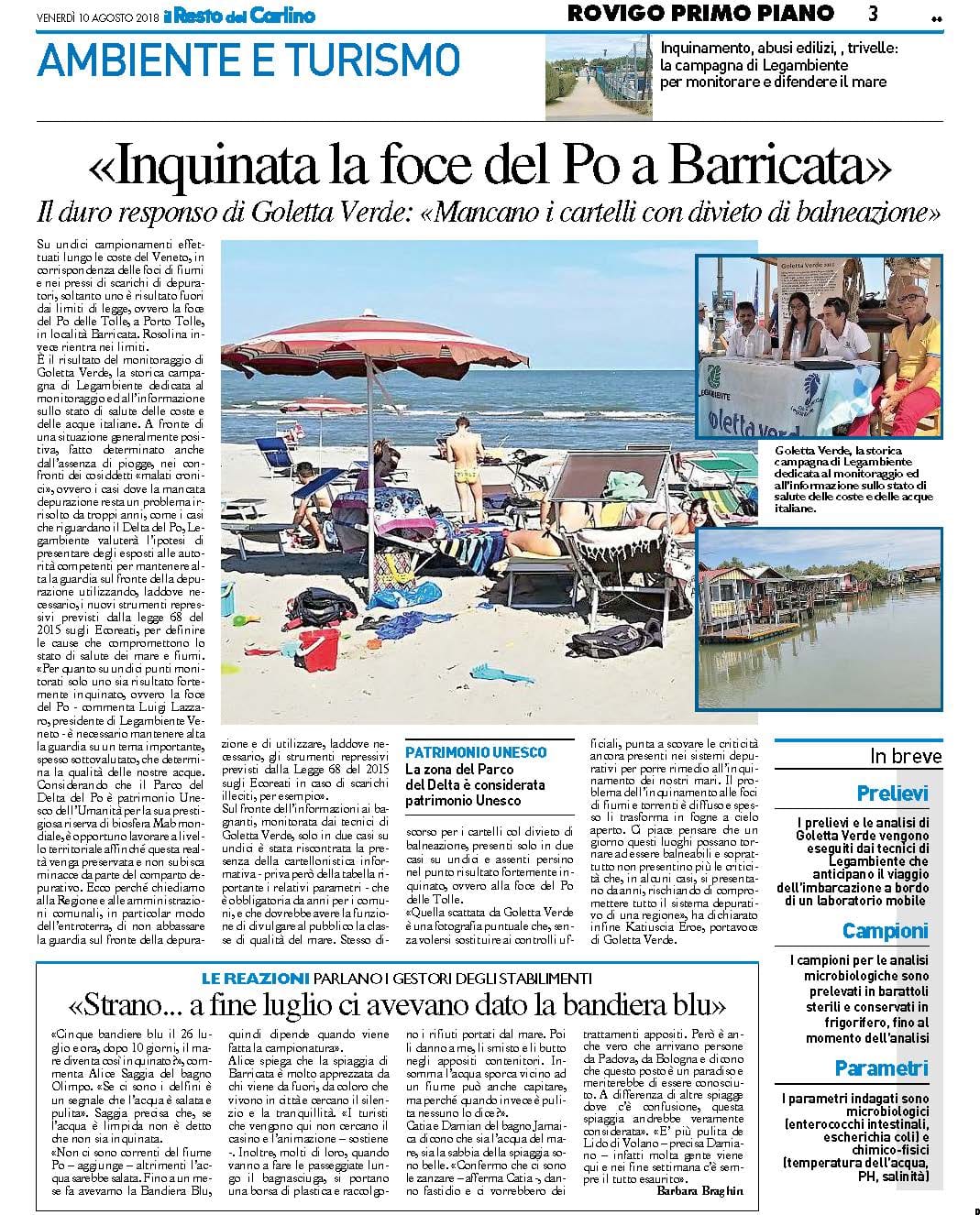Corriere Del Veneto del 10 agosto 2018, Legambiente boccia il delta