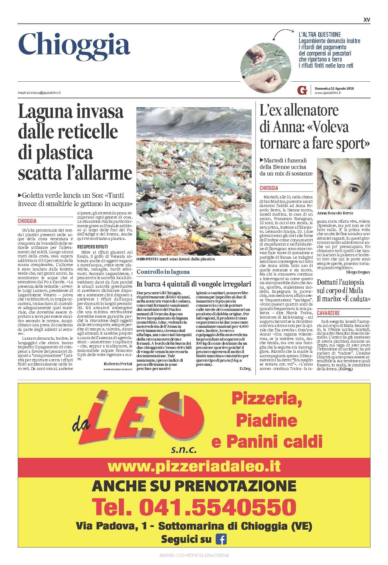 Gazzettino del 12 agosto 2018, laguna invasa dalle reticelle