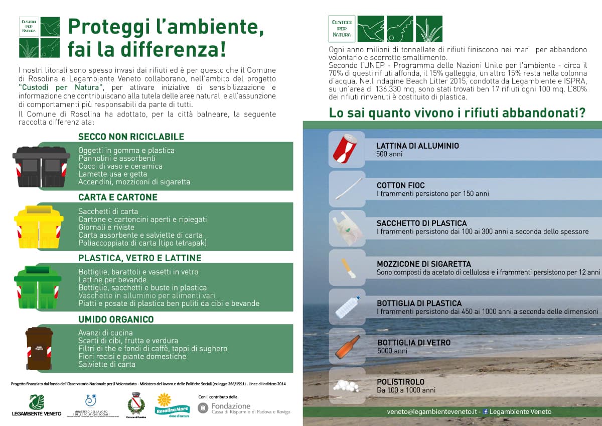 Durante il periodo estivo è stato distribuito negli stabilimenti balneari di Rosolina un volantino informativo per sensibilizzare sul tema dei rifiuti e della raccolta differenziata.